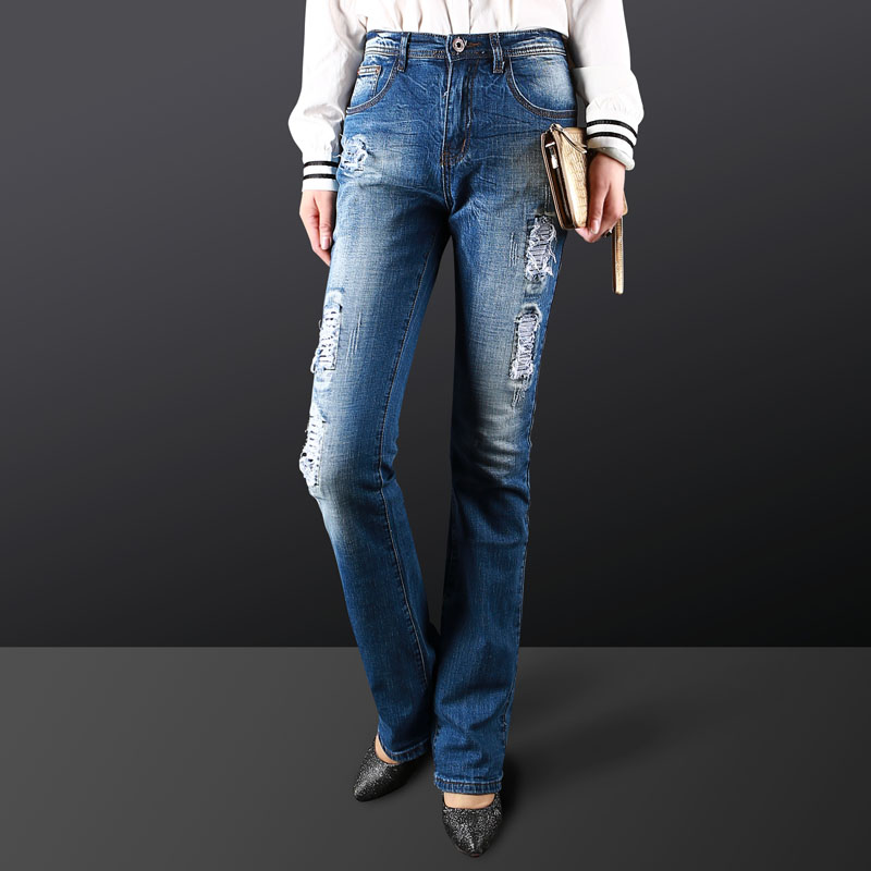春秋季新款女装牛仔破洞裤韩版潮女牛仔微喇叭裤 力显瘦乞丐裤热门设计联盟服务商