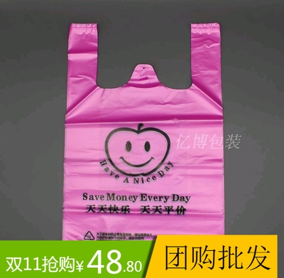 粉红笑脸塑料袋背心袋节日超市购物袋礼品马甲手提袋团购。热门设计联盟服务商