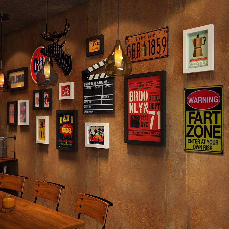 。酒吧装饰品场景布置复古装修风格酒馆墙体墙上装饰壁挂直播背景热门设计联盟服务商