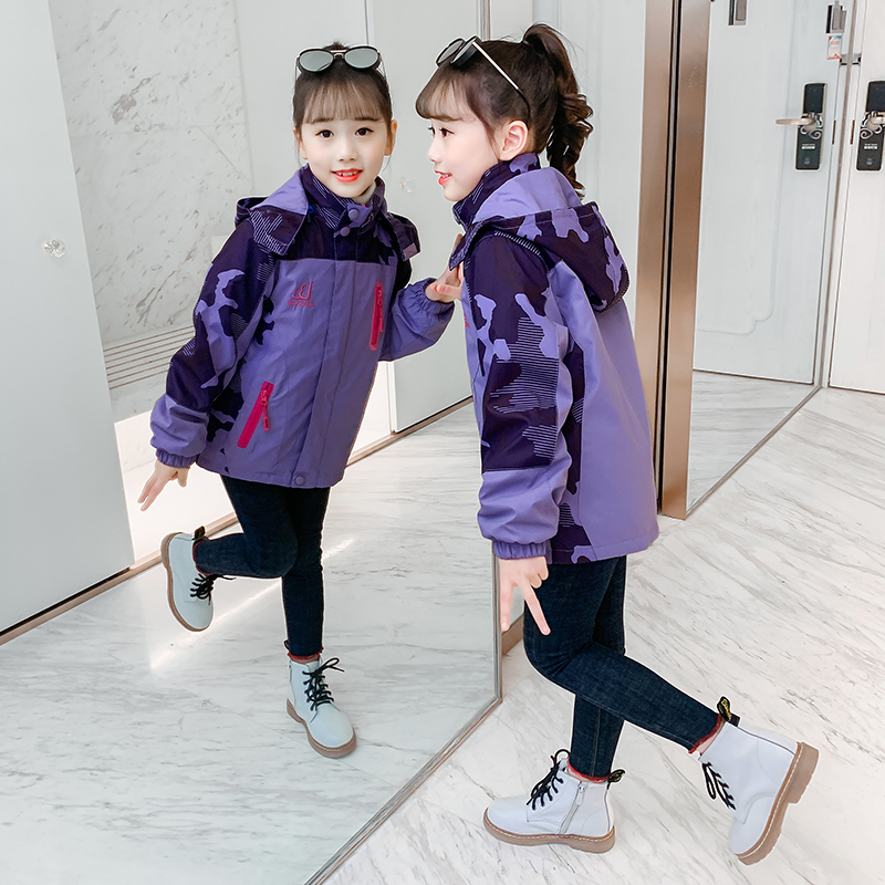 儿童冲锋衣三合一可拆卸女童加绒加厚外套2020新款中大童秋冬装潮热门设计联盟服务商
