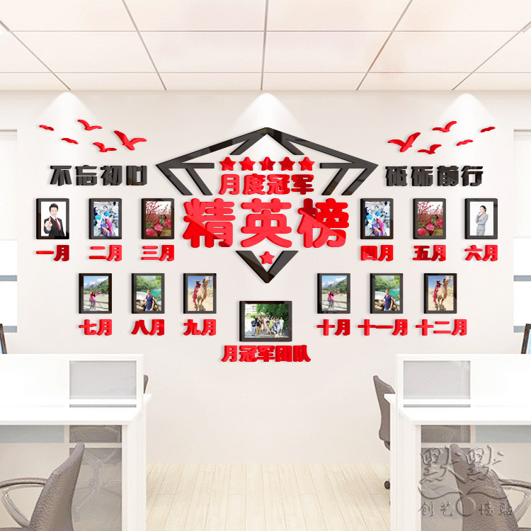 公司企业员工销售3d立体贴月度冠军业绩排行榜励志亚克力照片墙贴热门设计联盟服务商
