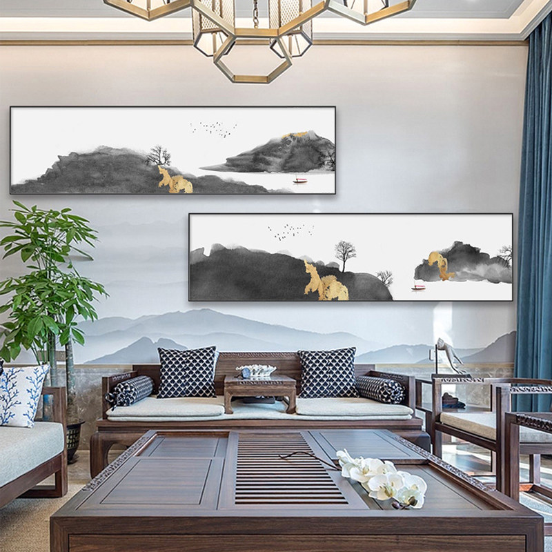 新中式客厅沙发背景墙装饰画卧室床头画挂画横幅山水酒店民宿壁画热门设计联盟服务商